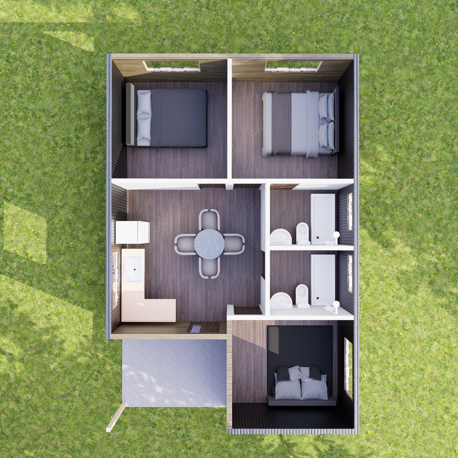 Kit de Obra Gruesa, incluye planimetría completa de proyecto, Paneles SIP, maderas, uniones, fijaciones y adhesivos.