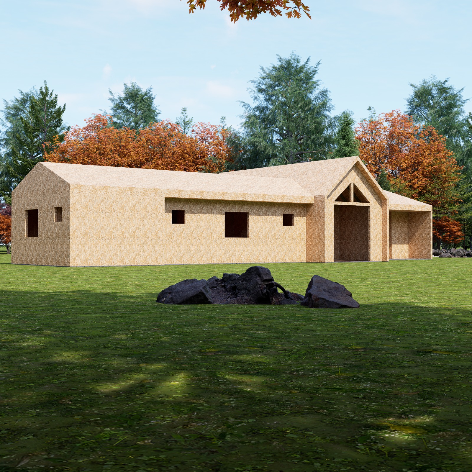 – Paneles SIP muros exteriores de 114,2 mm (dimensionados)