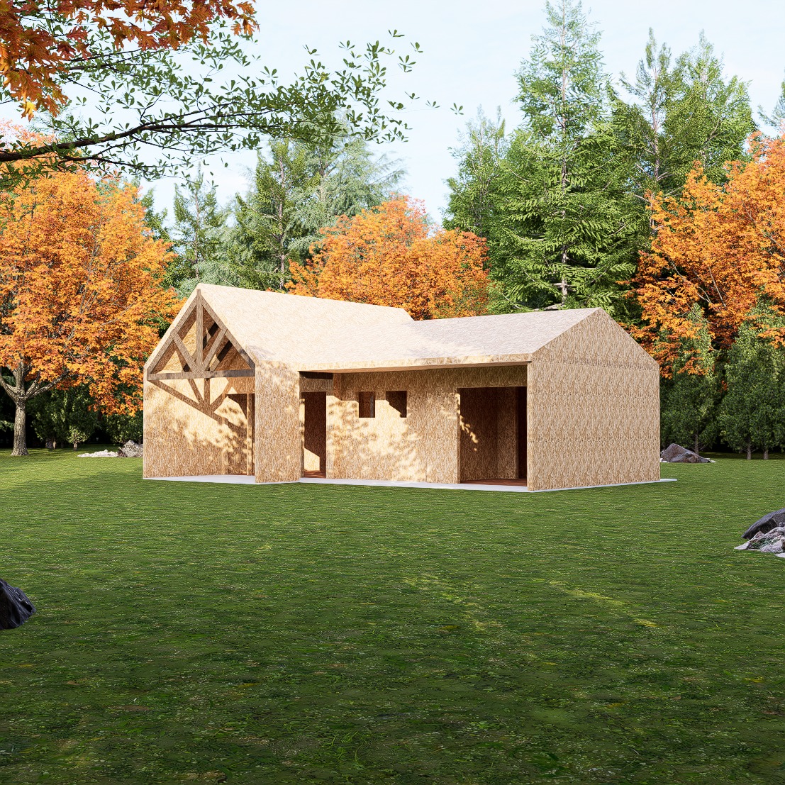 Kit de Obra Gruesa, incluye planimetría completa de proyecto, Paneles SIP, maderas, uniones, fijaciones y adhesivos